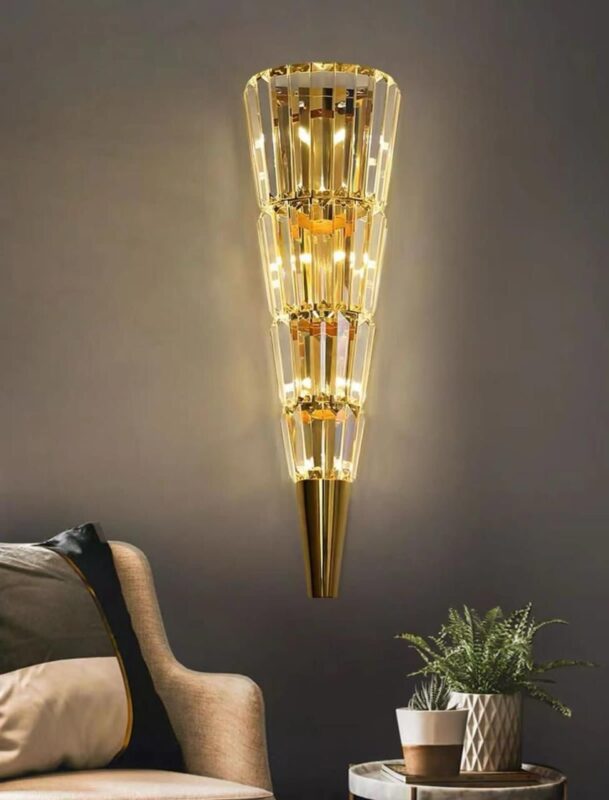 - Requires 8 G4 Bulbs (Not Included) Design: Post-modern creative design wall-mounted fixture, gold metal tube & transparent crystal tube combination wall lamp, to meet the auxiliary lighting needs of your room.